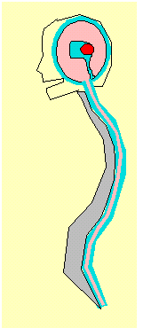 頭蓋内に満たされた髄液は、脊髄へと下行して、脊髄を満たして左右の脊髄神経鞘から全身に放出されます。